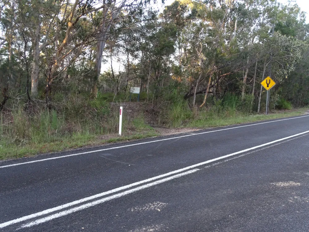 There are no signposts either marking the beginning the track or markers once on the track, but the entrance to the track can be found by looking for the yellow “forks” sign ( pictured below) – the entrance to the track is just visible before that, with a small Noosa National Park sign visible as one enters the track.