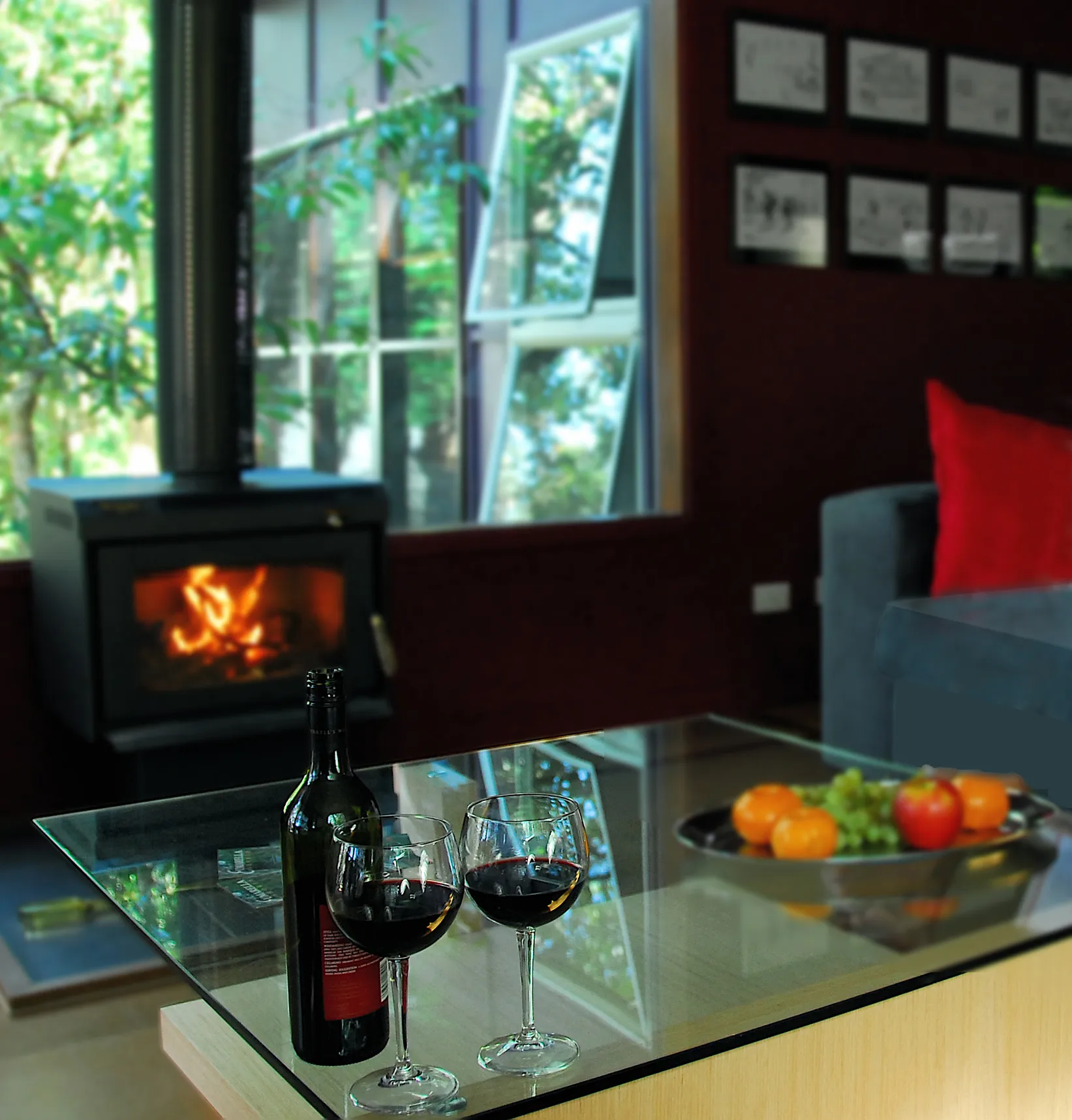 Curl up fireside with a glass of wine and let the warmth settle in. (Seasonal only.)